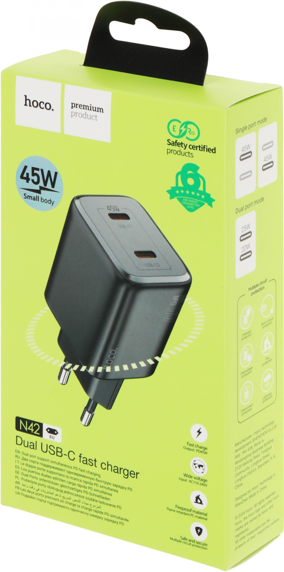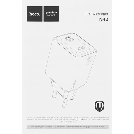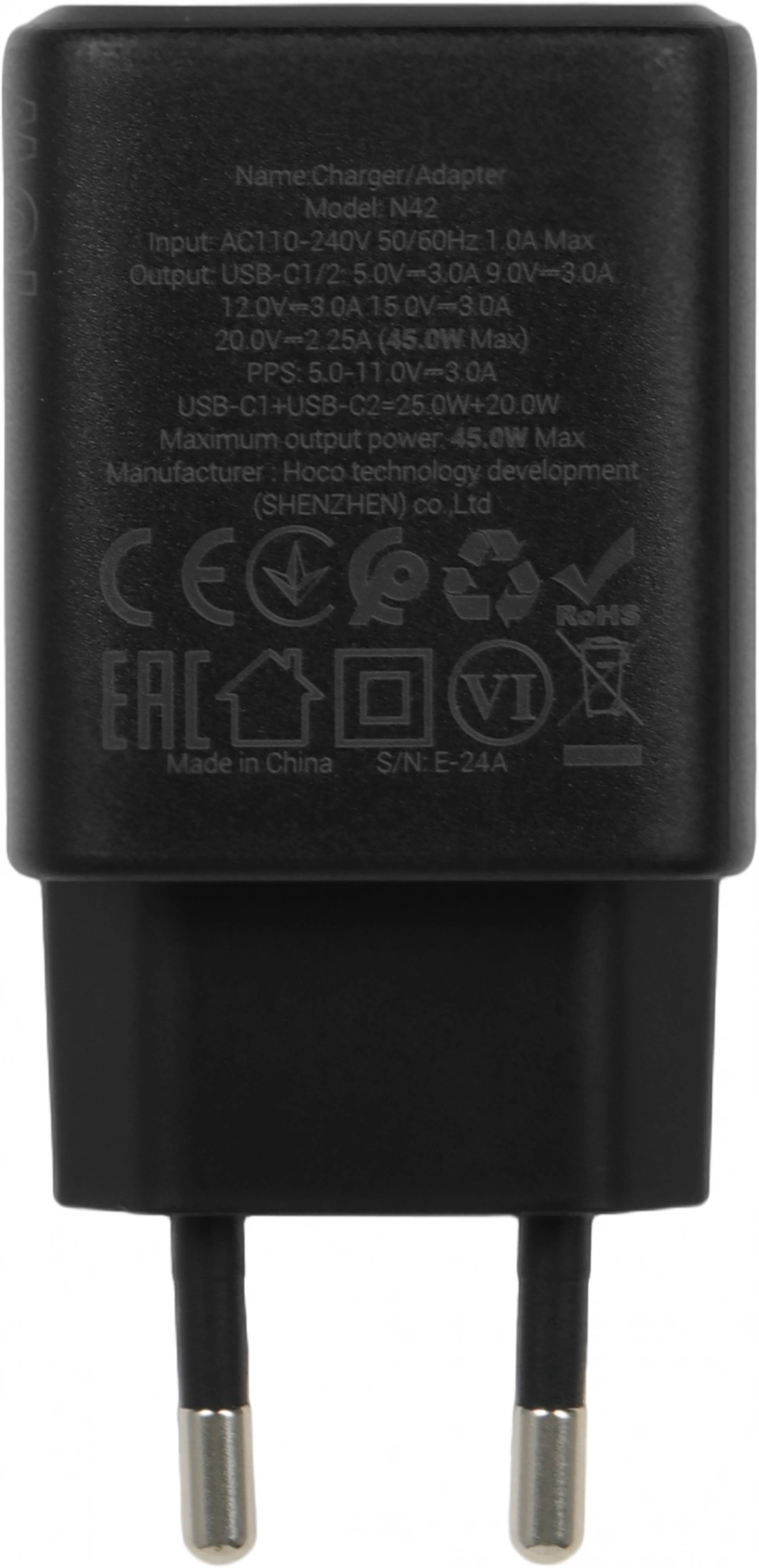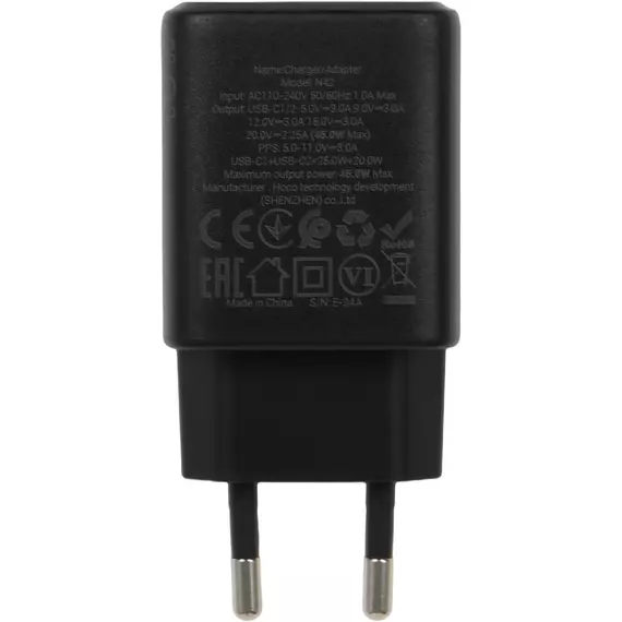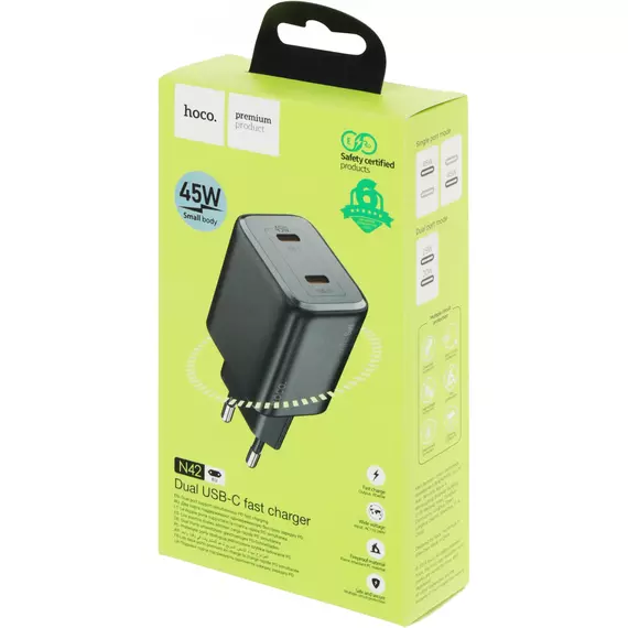 Сетевое зар./устр. Hoco N42 ELOGIADO 45W 3A+2.25A (PD+QC+AFC) 2xUSB type-C универсальное черный