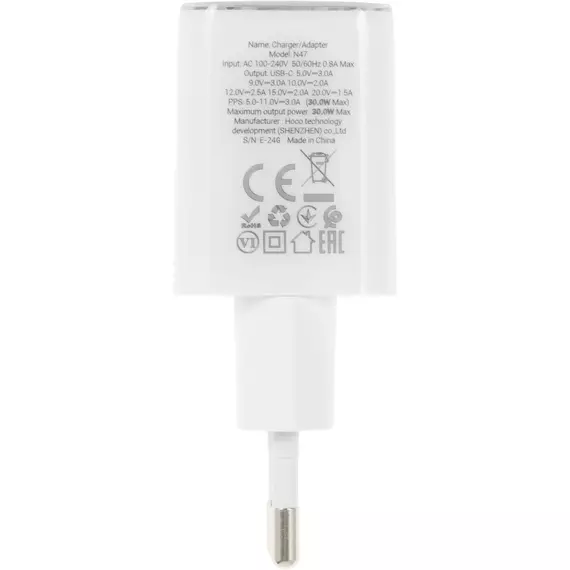 Сетевое зарядное устройство Hoco N47 Glorious 30W 3A (PD) USB Type-C универсальное белый [PD30W 35363]
