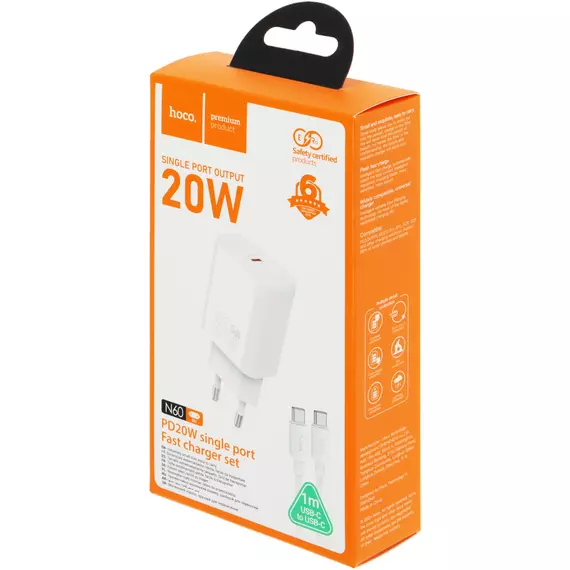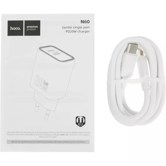 Сетевое зар./устр. Hoco N60 Gentle 20W 3A (PD+QC+AFC) USB Type-C универсальное белый [44228]