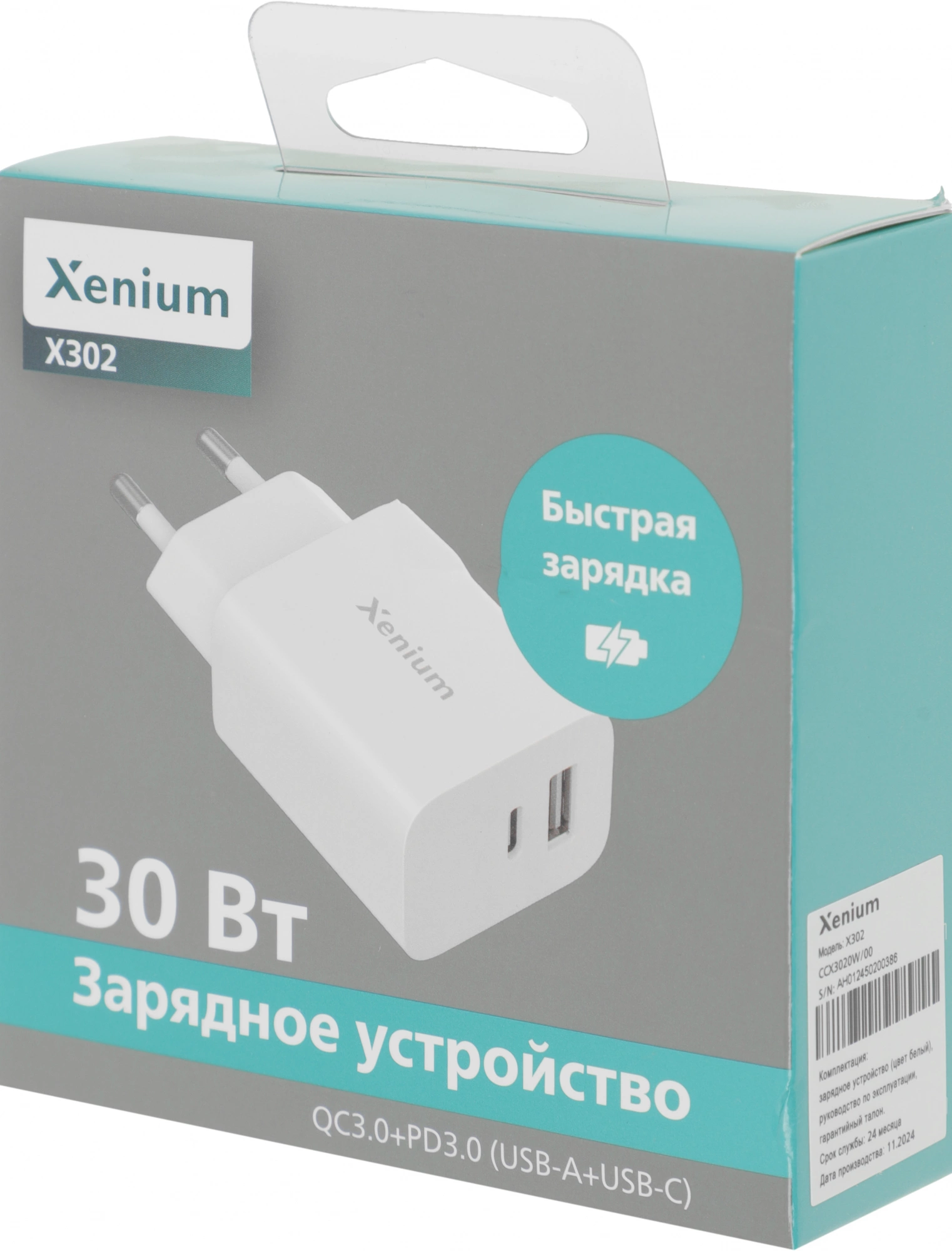 Сетевое зар./устр. Xenium X302 30W 3A+2A USB/USB Type-C универсальное белый [CCX3020W/00]