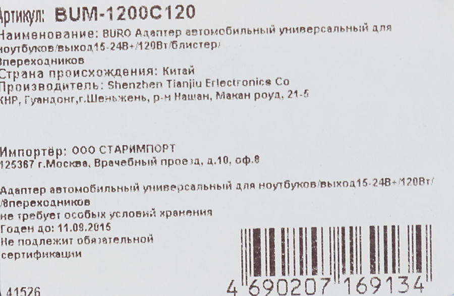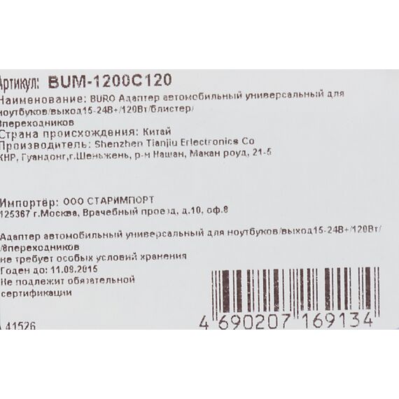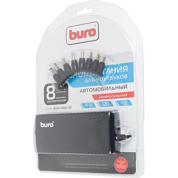 Блок питания ручной BURO BUM-1200C120 120W 15V-24V 11-connectors 5A 1xUSB 2A от прикуривателя