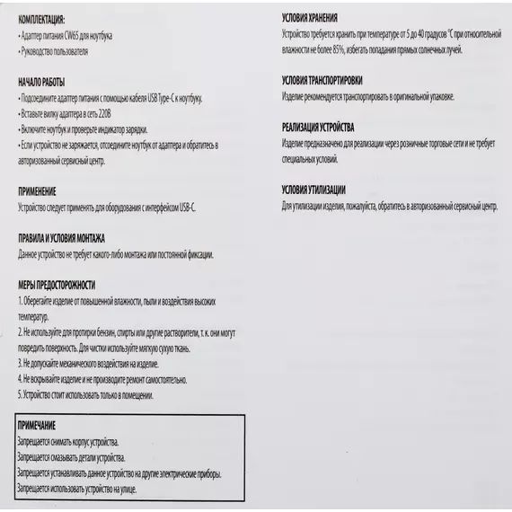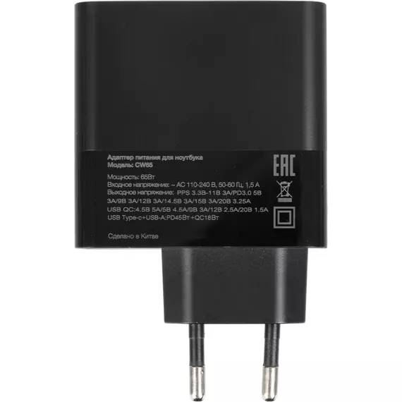 Адаптер питания универсальный с разъемом USB Type-C и поддержкой PD 3.0 и QC.