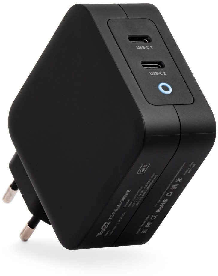 Блок питания TopON TOP-GaN-100WB автоматический 100W 5V-20V 5A 2xUSB от бытовой электросети LED индикатор [103207]