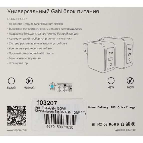 Наличие товара TopON TOP-GaN-100WB [103207]