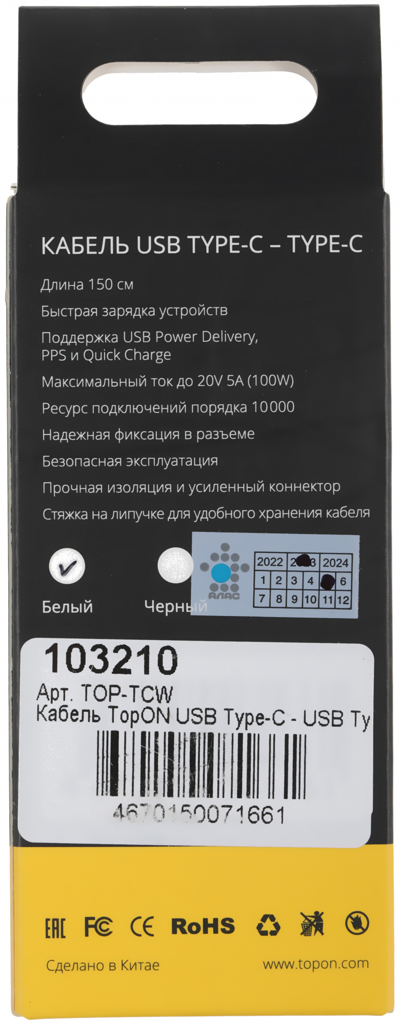 Длина 150 см Быстрая зарядка устройств Поддержка USB Power Delivery, PPS и Quick Charge Максимальный ток до 20V 5А (100W) Ресурс подключений порядка 10 000 Надежная фиксация в разъеме