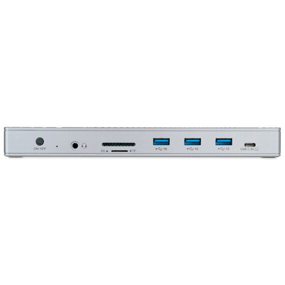 | Конфигурация выходов | 1xUSB-C, 2xHDMI 4K 60Hz, 2xDP 4K 60Hz, 3xUSB-A 3.2, 1xTF/microSD, 1xSD/MMC, 1x3.5mm audio, 1xRJ45 |