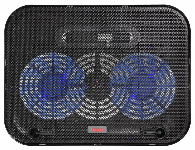 Подставка для ноутбука BURO BU-LCP140-B214H 14" 338x255x22мм 1xUSB 2x 140ммFAN 480г металлическая сетка/пластик черный