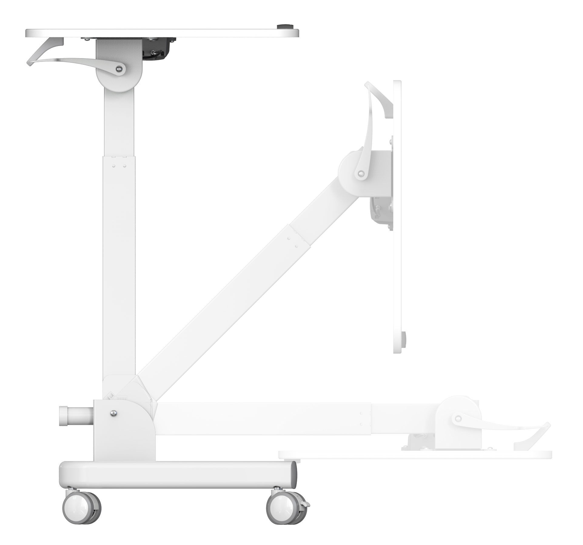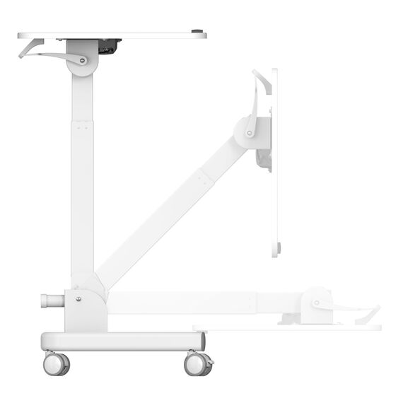 | Особенности | Простое управление: подъемный механизм плавно опускает и поднимает столешницу, можно остановить в любом положении. Наличие 4 колес обеспечивает маневренность, 2 колеса со стопором, для придания устойчивости. Полностью складной стол, удобное хранение и транспортировка. |