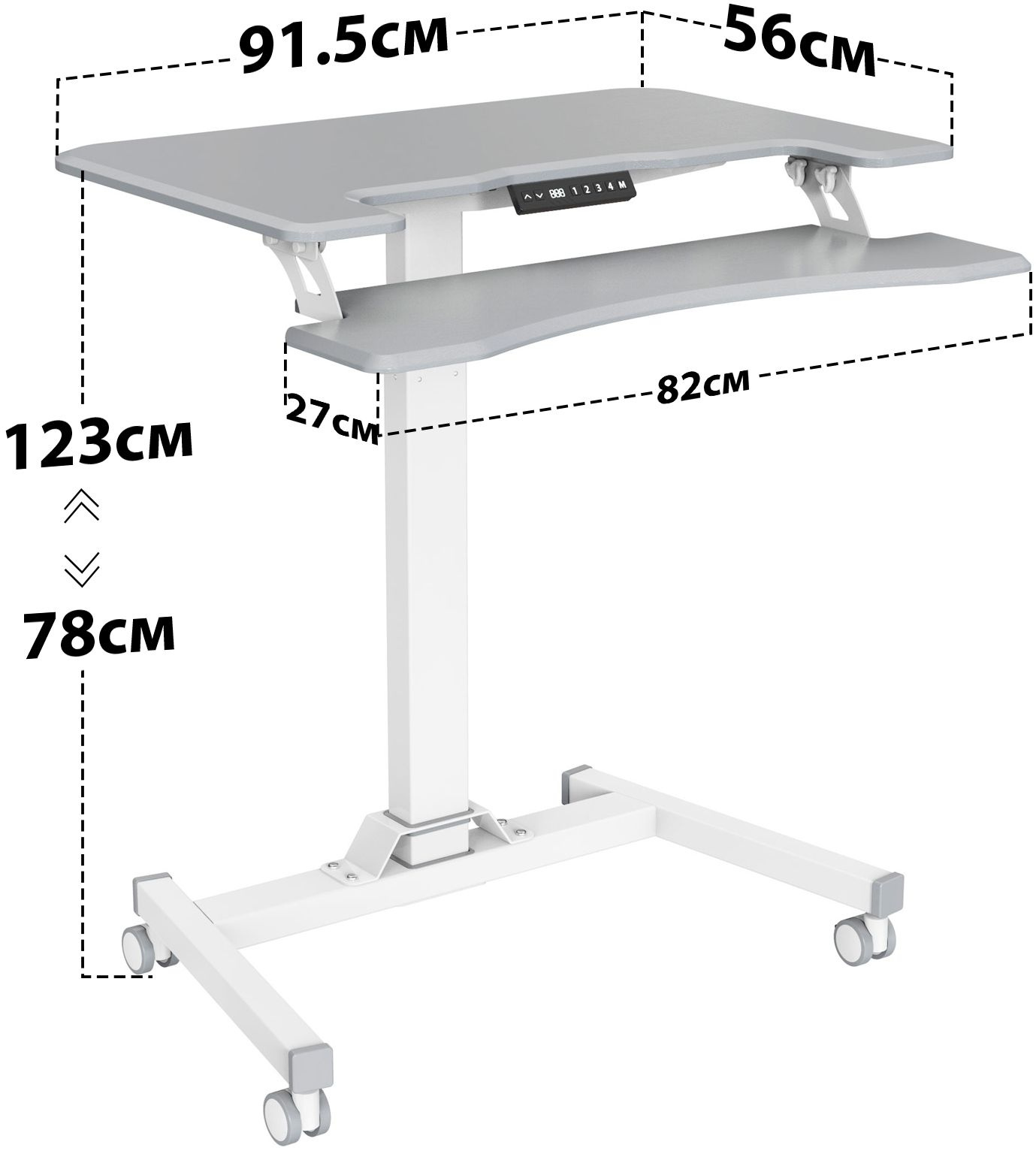 | Особенности | Стол с электроприводом. Хранение 4 запрограммированных значений, датчик от столкновений, термозащита, наличие 4 колес обеспечивает маневренность, 2 колеса со стопором, для придания устойчивости. |