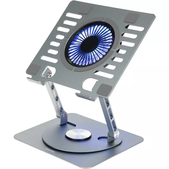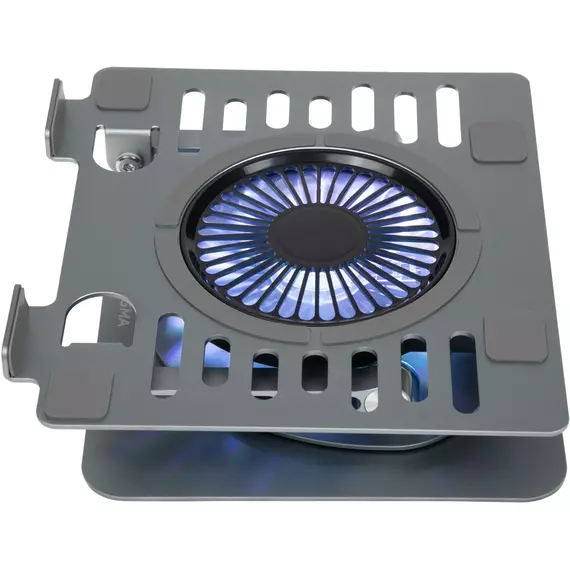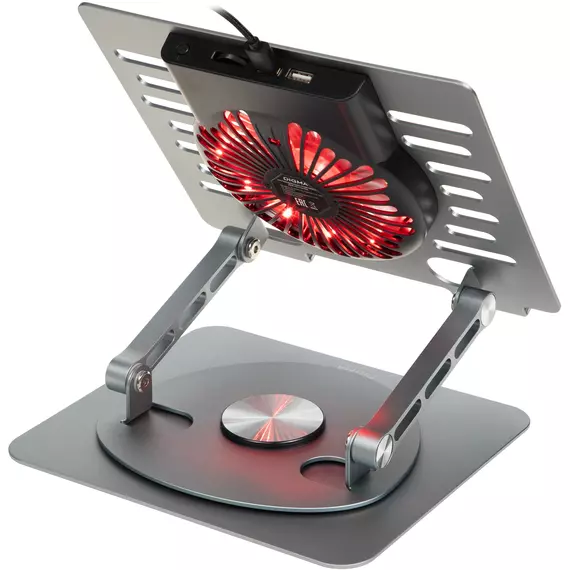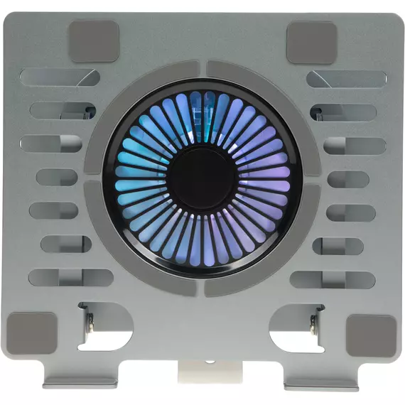 Металлическая подставка для ноутбука с прорезиненными вставками, которые препятствуют скатыванию ноутбука. Широкий диапазон настройки высоты и угла наклона позволяет легко подобрать оптимальное положение для работы. 10 режимов подсветки. Совместима с ноутбуками диагональю до 17".