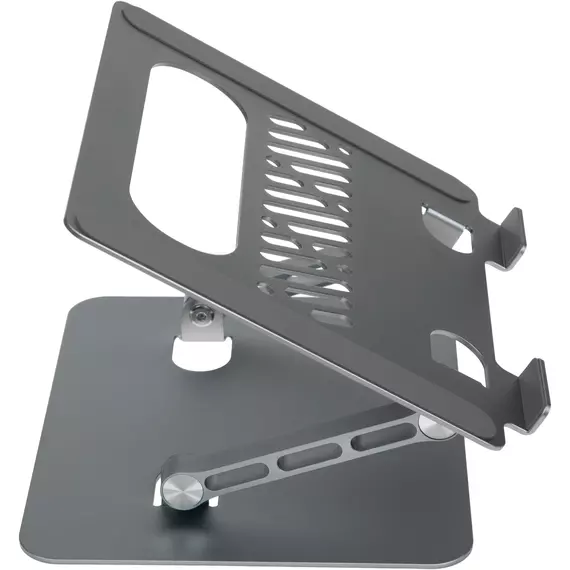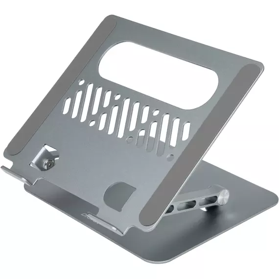 Металлическая подставка для ноутбука с прорезиненными вставками, которые препятствуют скатыванию ноутбука. Широкий диапазон настройки высоты и угла наклона позволяет легко подобрать оптимальное положение для работы. Совместима с ноутбуками диагональю до 17".