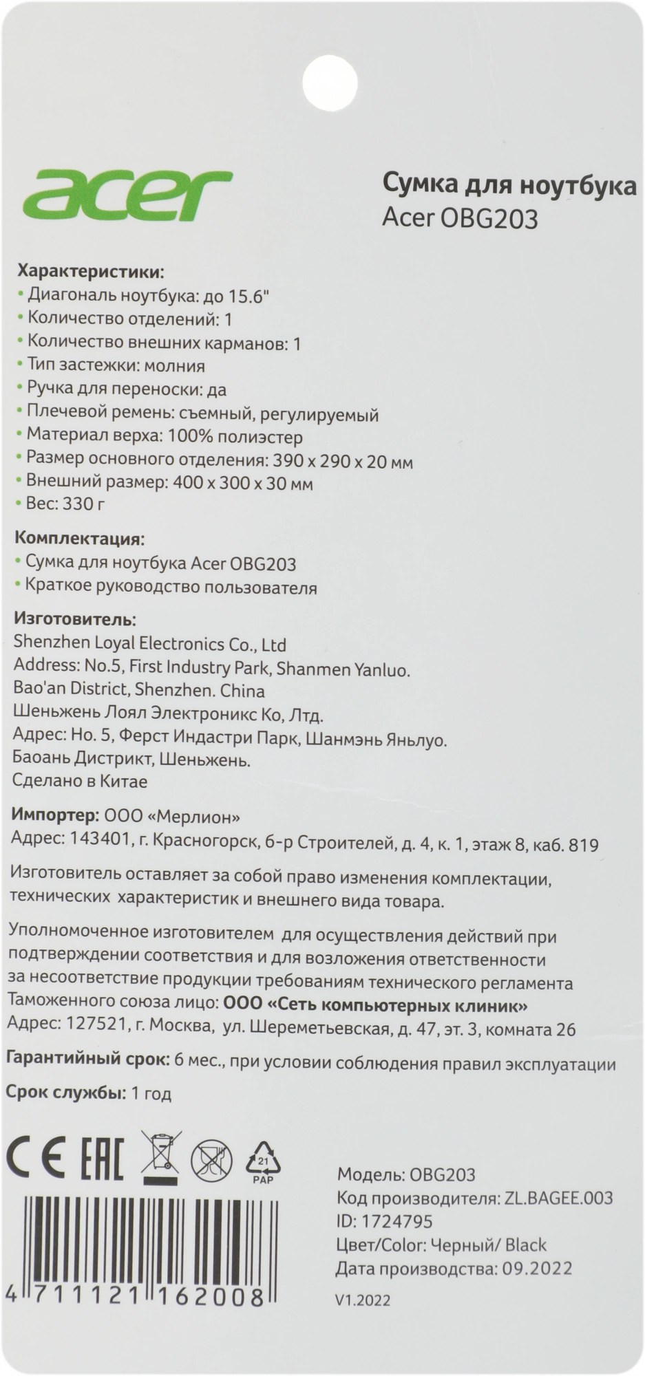 Сумка для ноутбука Acer LS series OBG203 15.6" черный полиэстер [ZL.BAGEE.003]