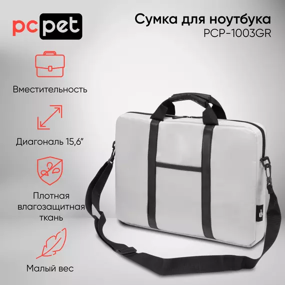 Сумка для ноутбука PC Pet PCP-1003GR 15.6" серый/черный нейлон