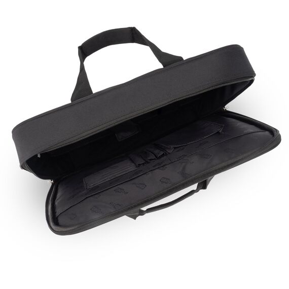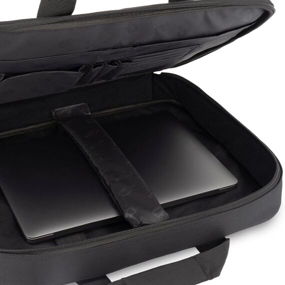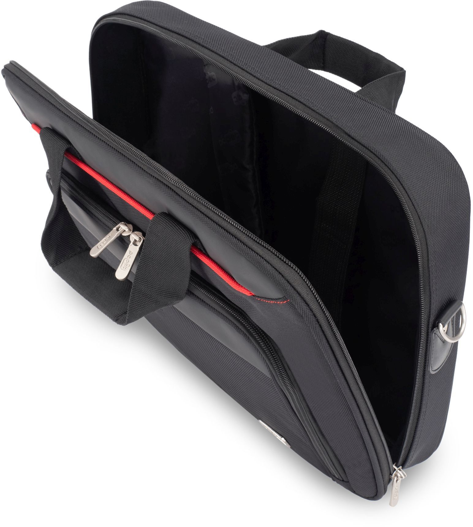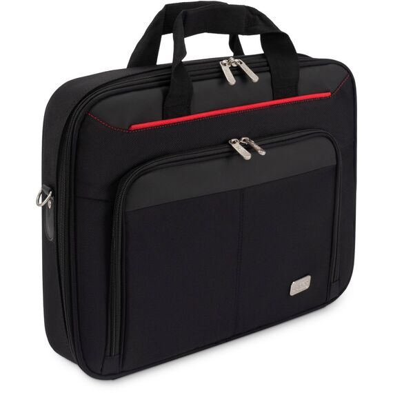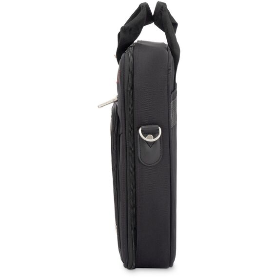 Удобная сумка классического дизайна для ноутбуков с экраном 15,6 дюйма. В основном отделении предусмотрены съемная перегородка и специальный ремешок для плотной фиксации внутри. Также внутри есть несколько полезных отделений для принадлежностей и личных вещей.