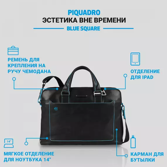 Деловая сумка Piquadro Blue Square с отделением для ноутбука черный натур.кожа [CA3335B2/N]