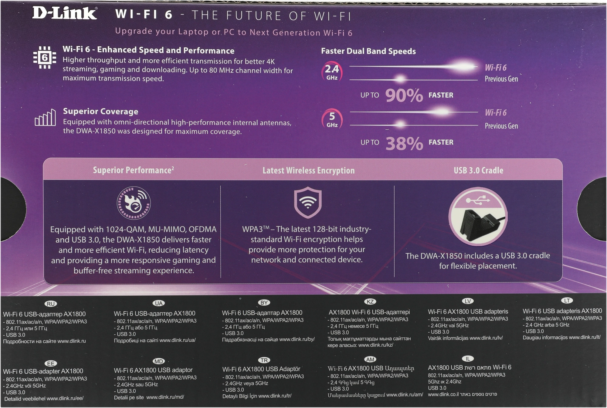 Сетевой адаптер Wi-Fi D-link DWA-X1850/A1A AX1800 USB 3.0