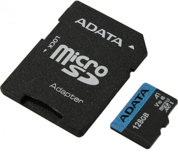 Карта памяти AData Premier microSDXC 128Gb A1 V10 UHS-I U1 + microSD-->SD Adapter [AUSDX128GUICL10A1-RA1]