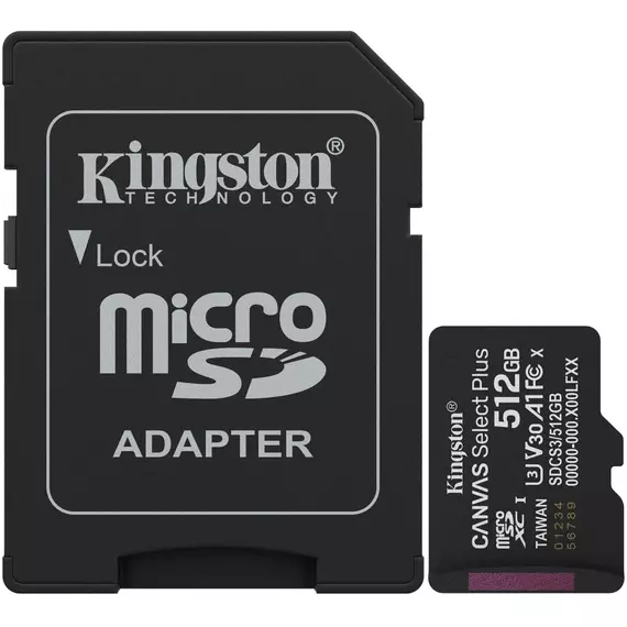 Флеш карта microSDXC Kingston 512GB Canvas Select Plus V30 A1 + adapter [SDCS3/512GB]