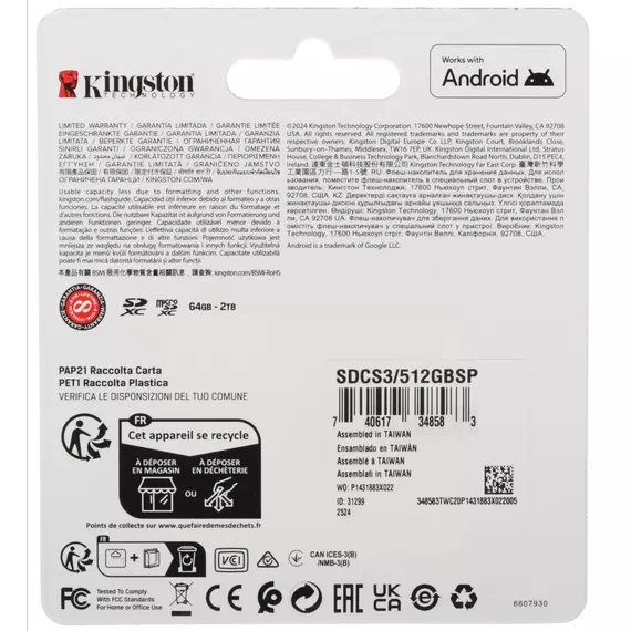 Описание Kingston 512GB Canvas Select Plus V30 A1 [SDCS3/512GB]
