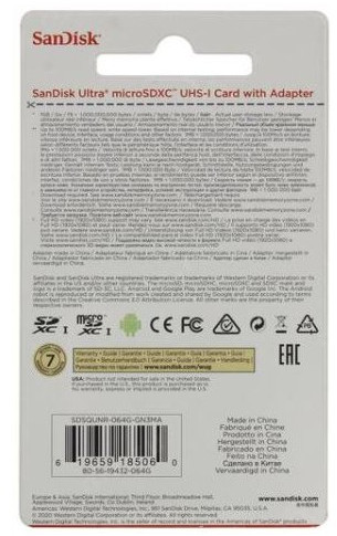 Особенности SanDisk 64Gb Ultra 80 UHS-I U1 Class10