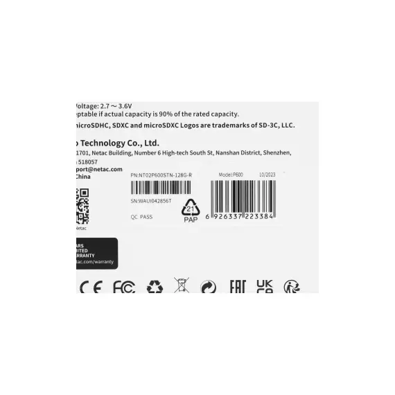 Флеш карта SDXC Netac 128GB P600 без адаптера [NT02P600STN-128G-R]