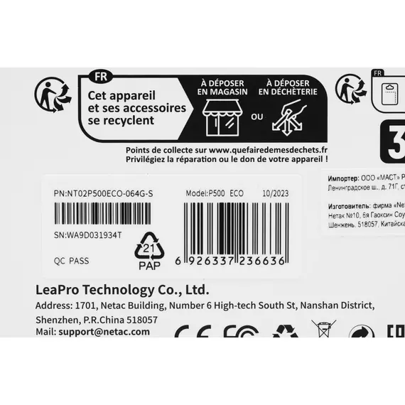 Описание Netac 64GB P500 Eco [NT02P500ECO-064G-S]