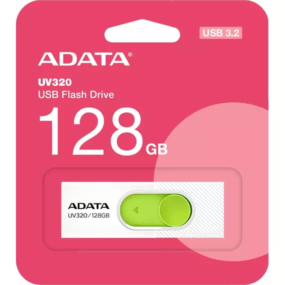 Флеш Диск AData 128GB UV320 USB3.2 белый/зеленый [AUV320-128G-RWHGN]