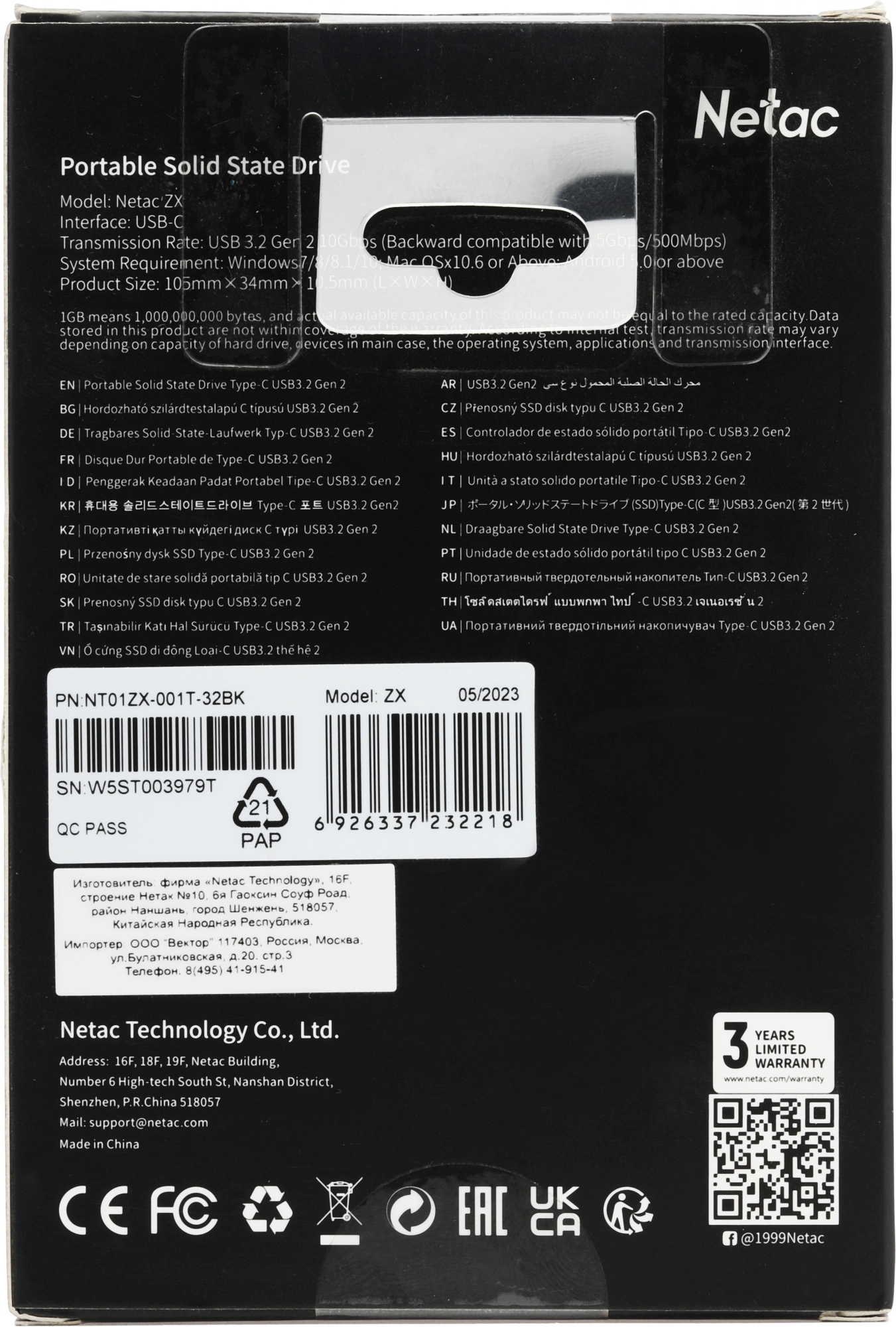 Внешний жесткий диск Netac Накопитель SSD USB-C 1Tb ZX 1.8" черный
