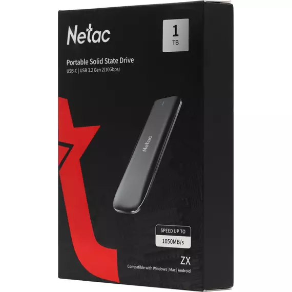 Описание Netac Накопитель SSD USB-C 1Tb ZX 1.8" черный