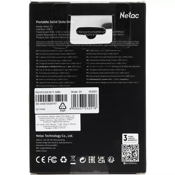 Наличие товара Netac Накопитель SSD USB-C 1Tb ZX 1.8" черный