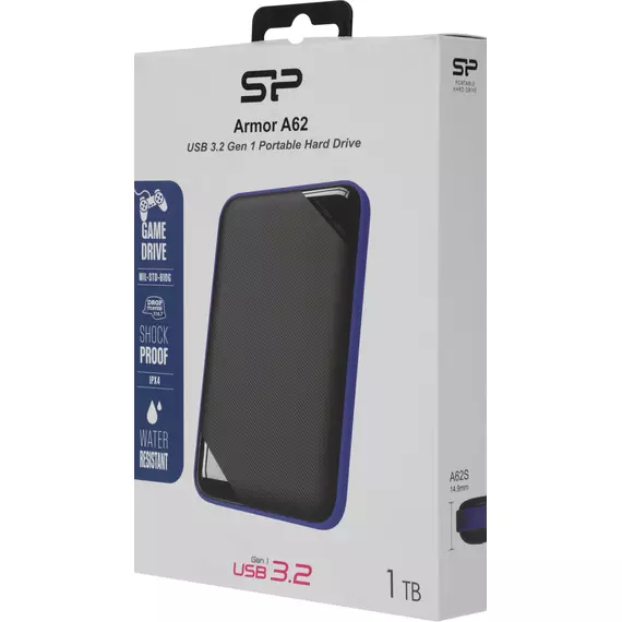 Внешний жесткий диск Silicon Power 1TB Armor A62 USB 3.0 2.5" HDD Portable RTL, синий [SP010TBPHD62SS3B]