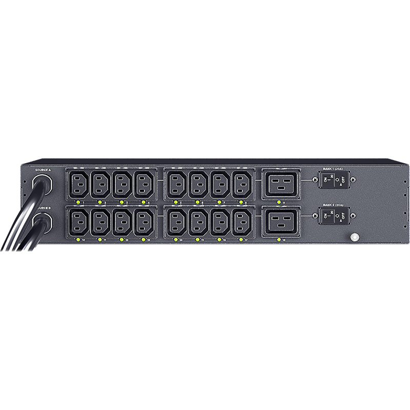 В устройство встроен Ethernet-модуль с возможностью горячей замены, который может работать с программным обеспечением для управления питанием PowerPanel и веб-интерфейсом управления питанием для удаленного мониторинга и настройки в режиме реального времени. Цифровой ЖК-дисплей также настраивается по цвету, что позволяет пользователям легко обслуживать и контролировать ATS PDU.