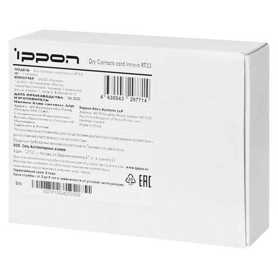 Наличие товара Ippon Dry Contacts card Innova RT33