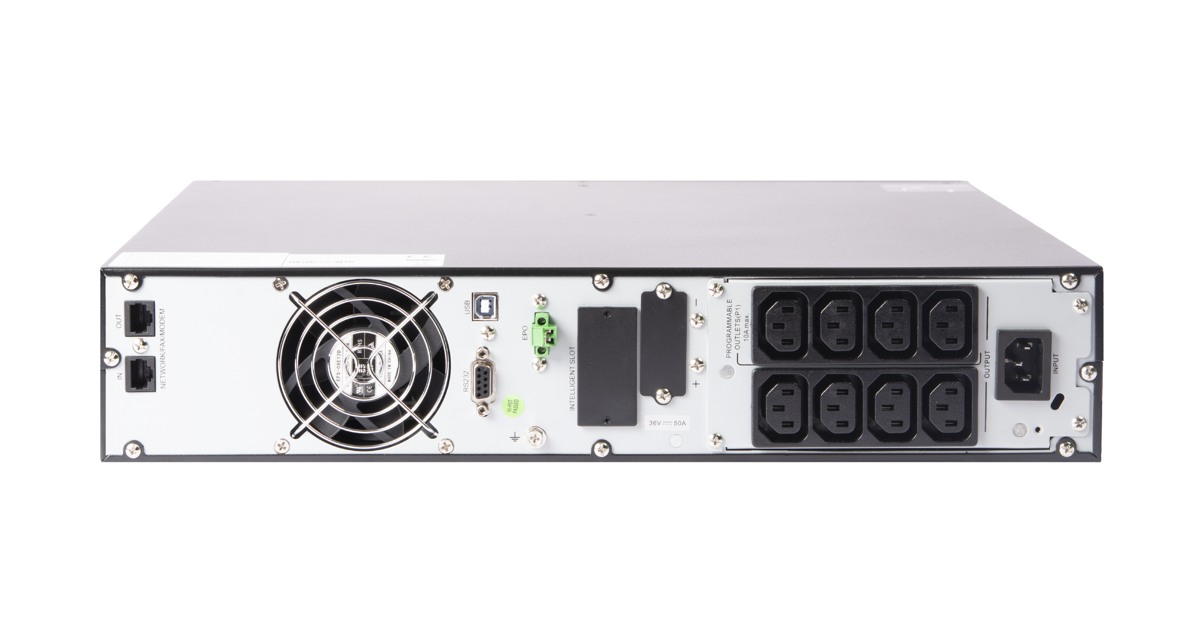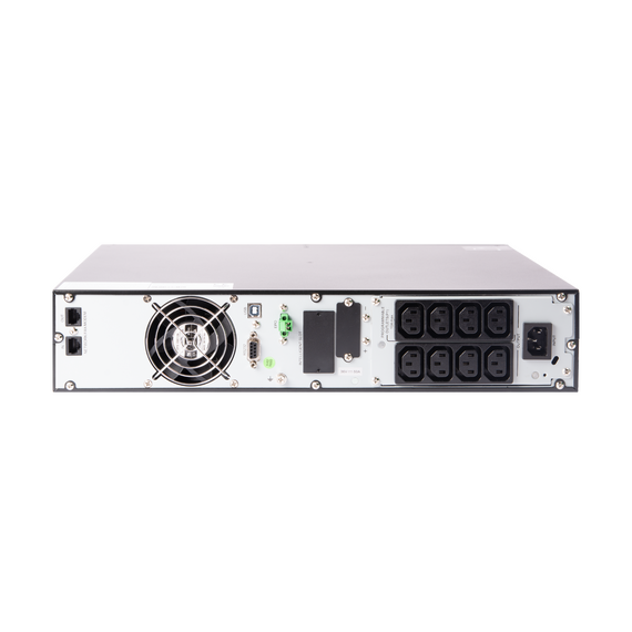 Модель является однофазным ИБП типа On-line с мощностью 1000 ВА / 1000 Вт. ИБП укомплектован тремя аккумуляторами 12 В/ 9 Ач с напряжением 36 В. Доступно подключение как дополнительных батарейных блоков, так и внешних АКБ. ИБП данной серии возможно установить как в шкаф 19”, так и в формате Tower c помощью специального приспособления для напольного размещения — это позволяет интегрировать устройства вне зависимости от предоставляемых условий