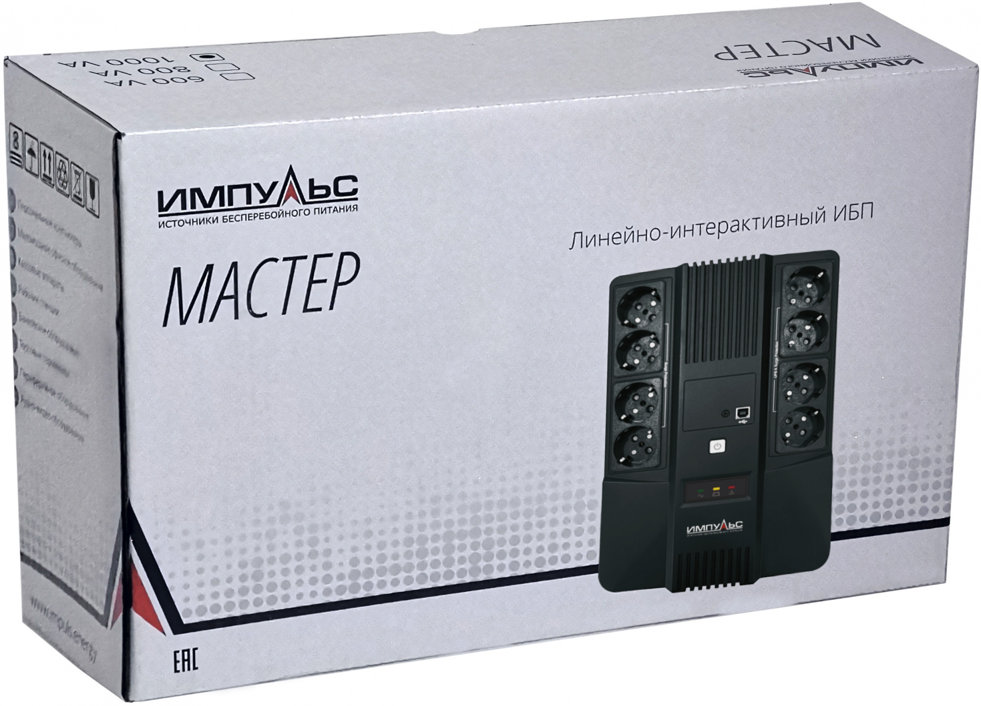 Источник бесперебойного питания ИМПУЛЬС Импульс Мастер 1000 600Вт 1000ВА черный MT10201