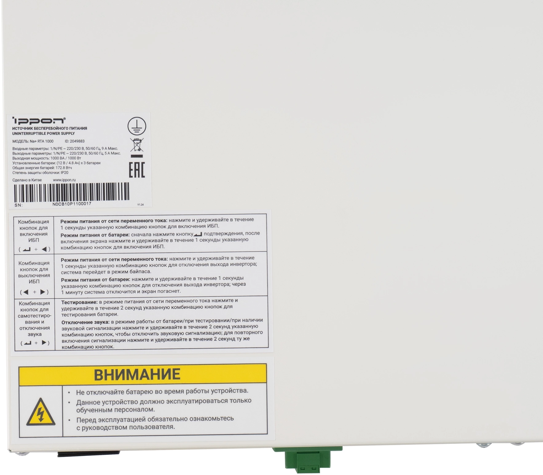 Источник бесперебойного питания Ippon Na+ RTA 1000 1000Вт 1000ВА белый [2049883]