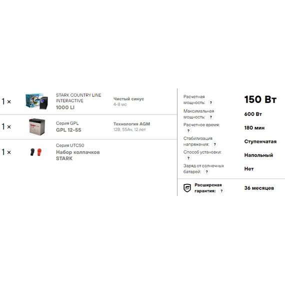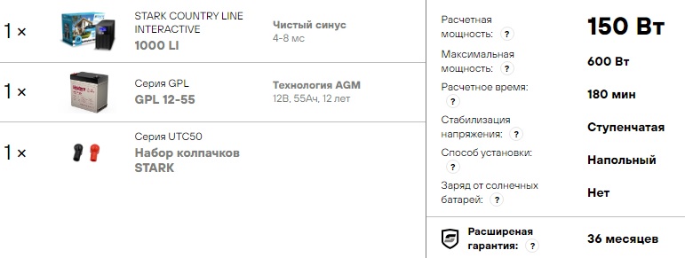 Комплект ИБП Stark Country 1000 LI нагрузка 150Вт, автономия 3 часа