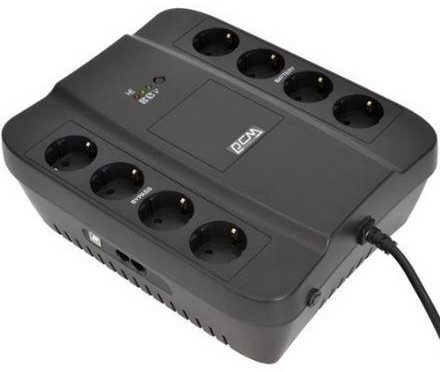 - Количество выходных розеток: 4 розетки евростандарт с заземлением, 4 розетки евростандарт без резервного питания