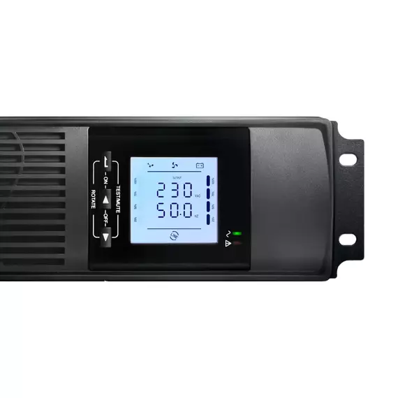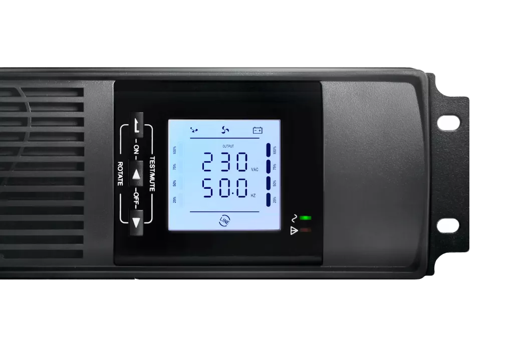 ИБП выполнен в универсальном корпусе RT, позволяющем устанавливать его горизонтально (в 19 дюймовые шкафы или стойки) либо вертикально (на пол).