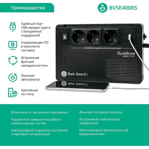 Источник бесперебойного питания Systeme Electric BVSE400RS 240Вт 400ВА черный