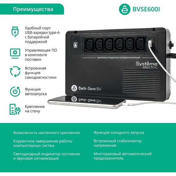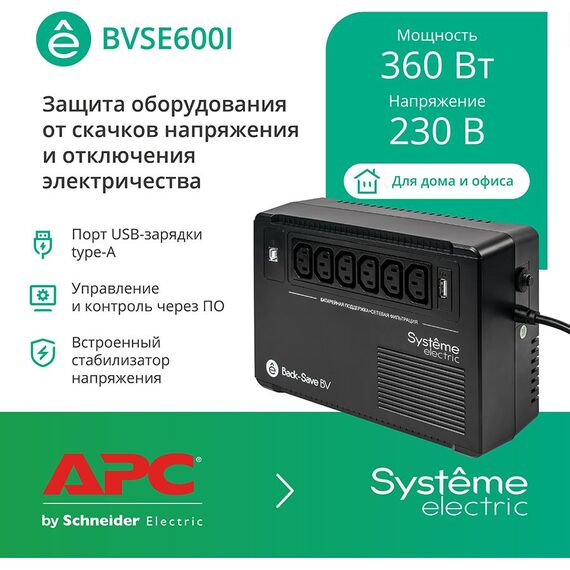 Источник бесперебойного питания Systeme Electric BVSE600I 360Вт, 600ВА, черный