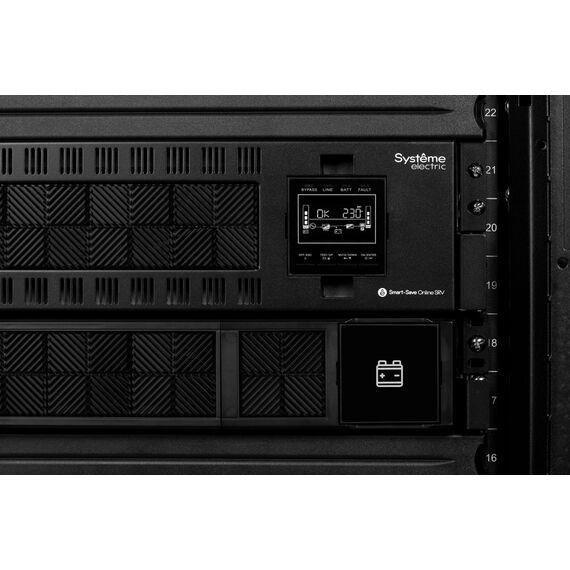Источник бесперебойного питания Systeme Electric SRVSE10KRTXLI5U Smart-Save Online SRV, 10000VA/9000W, On-Line, Extended-run, Rack 5U(Tower convertible), LCD, Out: Hardwire, SNMP Intelligent Slot, USB, RS-232