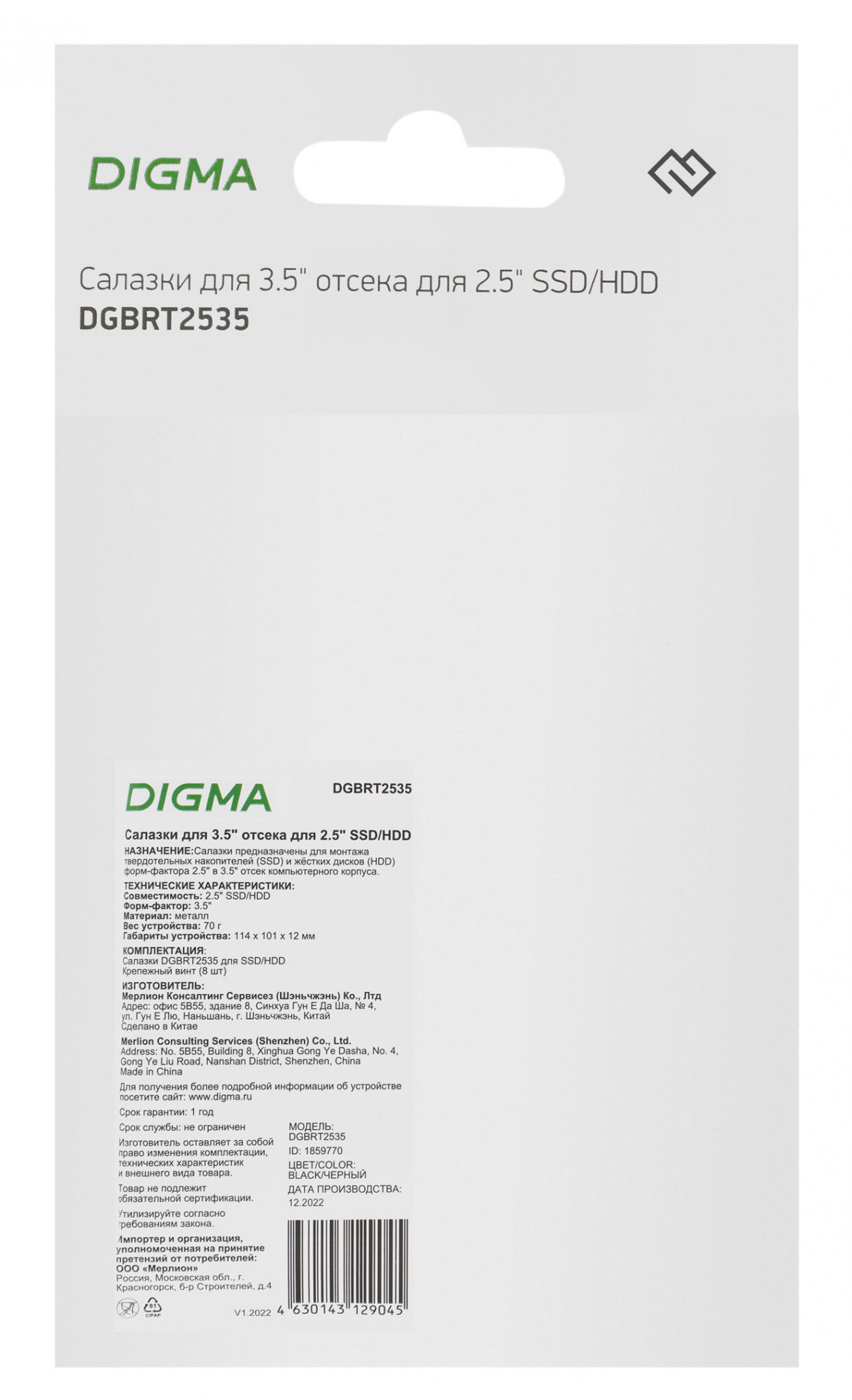 Салазки Digma DGBRT2535 для 3.5" отсека для HDD 2.5" металл