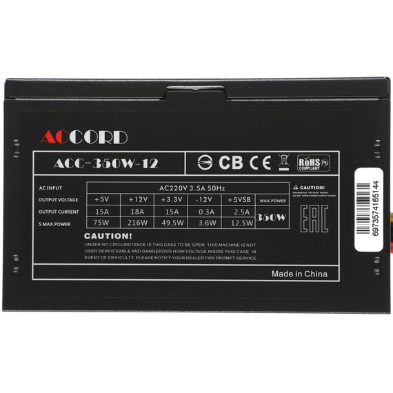 Блок питания Accord ACC-350W-12 ATX 350W (20+4pin) 120mm fan 4xSATA