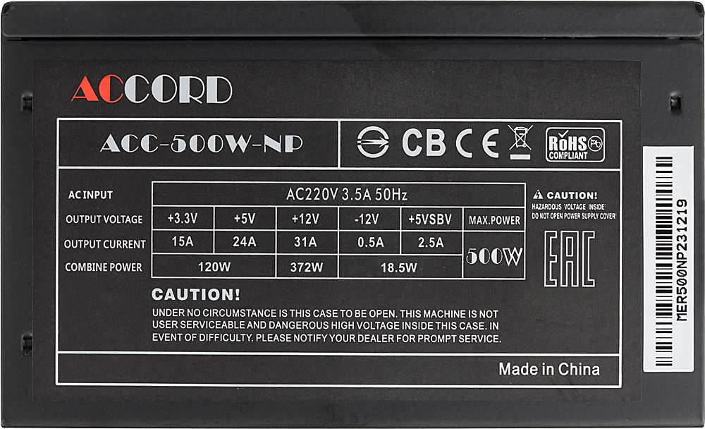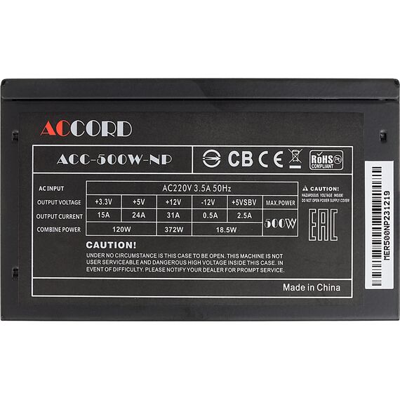 Блок питания Accord ACC-500-NP ATX 500W (20+4pin) 120mm fan 4xSATA