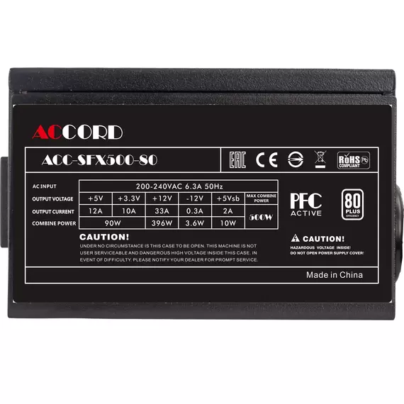 Блок питания Accord ACC-SFX500-80 SFX 500W 24pin APFC 80mm fan 3xSATA RTL