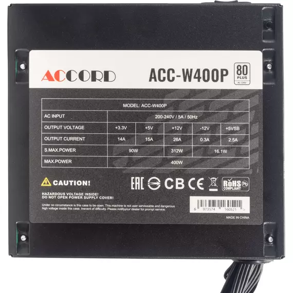 Блок питания Accord ACC-W400P ATX 400W 80 PLUS WHITE (20+4pin) 120mm fan 6xSATA