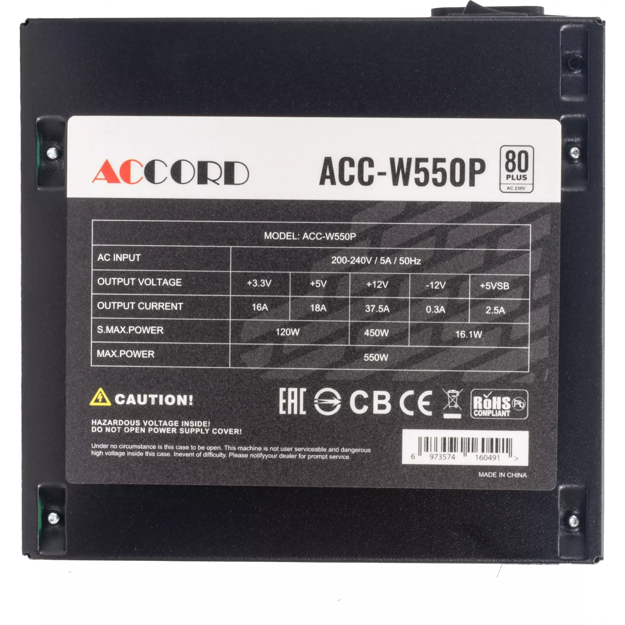 Блок питания Accord ACC-W550P ATX 550W 80 PLUS WHITE (20+4pin) 120mm fan 6xSATA
