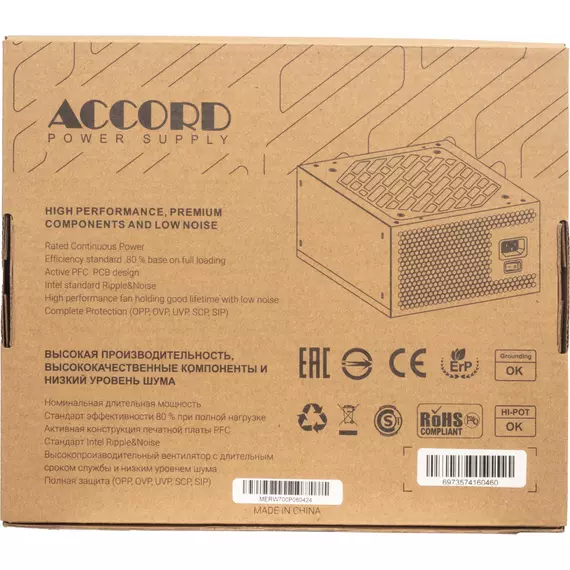 Блок питания Accord ACC-W700P ATX 700W 80 PLUS WHITE (20+4pin) 120mm fan 6xSATA RTL