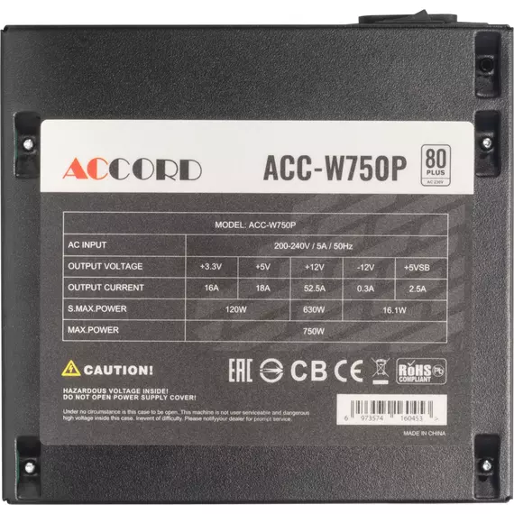 Блок питания Accord ACC-W750P ATX 750W 80 PLUS WHITE (20+4pin) 120mm fan 6xSATA RTL
